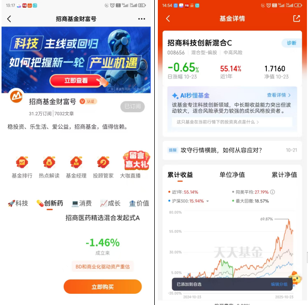 #天天基金调研团#10月23日收盘后,腾讯会议室内,一场聚焦科技创新的基金经理交流会热度空前。天天基金调研团与招商基金联合举办的活动中,招商科技创新混合基金的基金经理张林的分享引发投资圈热议。其管理的近1年80.16%的收益率背后,是对科技产业"的独特见解及坚定押注。$招商科技创新混合C(OTCFUND|008656)$