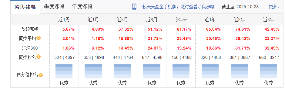 从阶段涨幅四分位图可以看出,该基金具有很好的业绩表现。