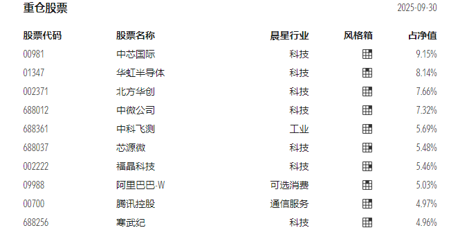 从基金持仓情况看,该基金前十大持仓股票中,港股+科创板股票占8成。