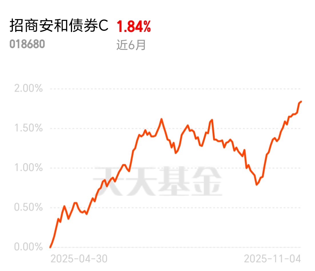 今天早盘债市情绪挺好,利率债和信用债都有上涨,资金面也得到了支撑。想找只稳当的债券基金,招商安和债券C就不错,近6个月收益1.84%,在当下行情里很能打。