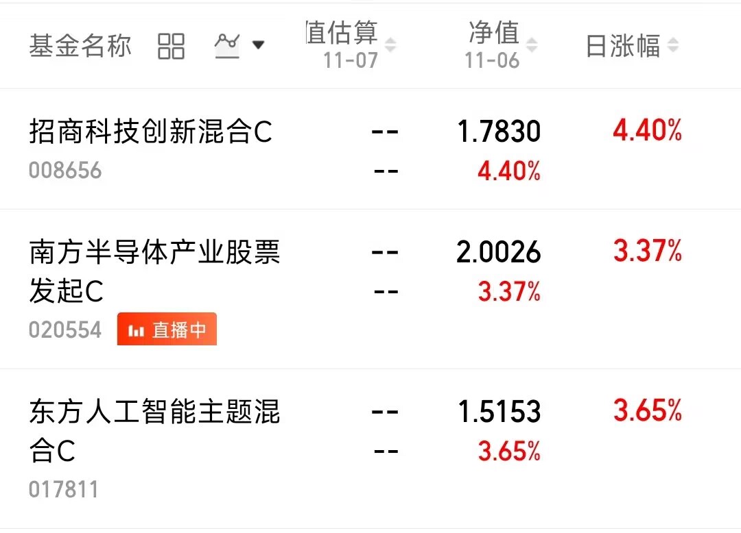 昨天半导体板块上涨,尽显强势,产业催化信号明显。今天板块回调,我关注的$招商科技创新混合C(OTCFUND|008656)$昨日上涨4.4%,业绩领跑同类、排名优秀。AI 技术爆发带动下,半导体行业前景广阔,基金长期收益稳定,是布局科技主线的优质选择,趁着回调先上车了!