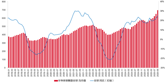 第一,AI算力产业链。国产化率低的芯片端、设备端是优先选择。全球半导体9月份销售额同比为25.13%,2025年1-9月累计同比为20.42%。存储结构性缺货持续,三星、SK海力士已开始签2-3年长协,国内相关企业订单正在爆发。