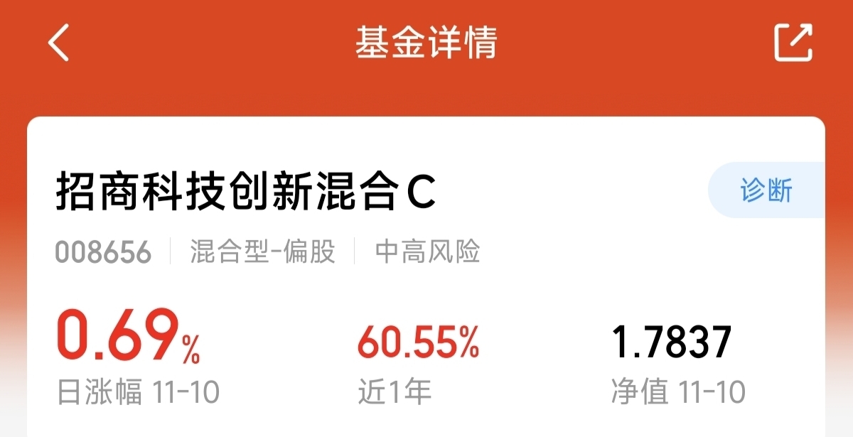 最近的科技还是波动比较大。昨天市场进来集体反弹。但是科技表现的还是比较弱,$招商科技创新混合C$ 投资主动的科技混合基金。聚焦科技创新赛道。昨天还逆势上涨0.69%。近一年涨幅60.55%。长期稳定收益的能力强。