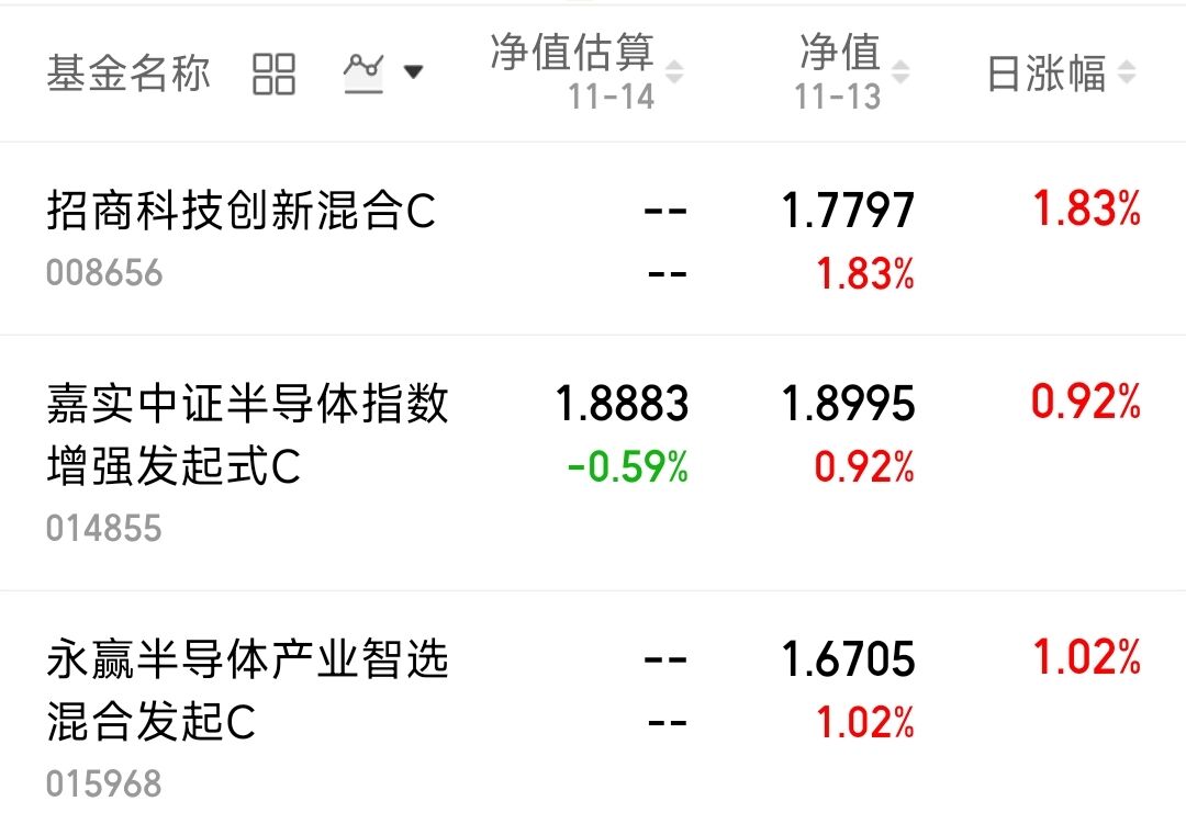 现在美股波动特别大,上窜下跳的不稳定。A 股虽说比美股相对坚挺,但昨天刚有点上涨起色,今天受外盘大跌和自身因素影响再次回落。不过要是出现大幅低开的情况,估计能吸引不少资金进来抄底,不用太慌,看看后续资金承接力度就行。$招商科技创新混合C(OTCFUND|008656)$昨日上涨1.83%,$嘉实中证半导体指数增强发起式C(OTCFUND|014855)$上涨0.92%,$永赢半导体产业智选混合发起C(OTCFUND|015968)$上涨1.02%,期待今日能够再次探底回升收红!