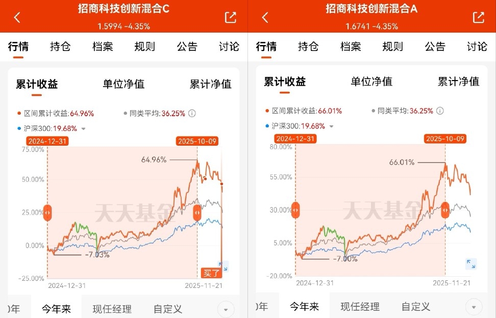 对于国产AI产业的具体投资这一块,今年以来不少主动型权益基金的表现十分出色,有回撤也能够通过高弹性反弹创新高,$招商科技创新混合C$ $招商科技创新混合A$就是其中之一,目前由张林经理在管,张经理有着近15年的投研经验、近10年的产品投资管理经验,以“产业趋势洞察+深度基本面研究”为核心,为招商科技创新混合带来了优越表现。前三季度,悉心研判市场动向,Q1重点关注港股新消费与AI应用、Q2延续港股配置但从消费转移至AI产业链与半导体、Q3则全线注重半导体国产化与AI算力,A/C份额前三季度收益超60%,整体的组合投资收益回报显著。根据最新持仓显示,四季度张经理依然侧重半导体芯片国产化,重点布局中芯国际、华虹半导体、北方华创、阿里巴巴等核心龙头企业,个人还是比较认同这样的调仓布局的,只不过最近的市场短期风格上被外围搅得一团乱麻。