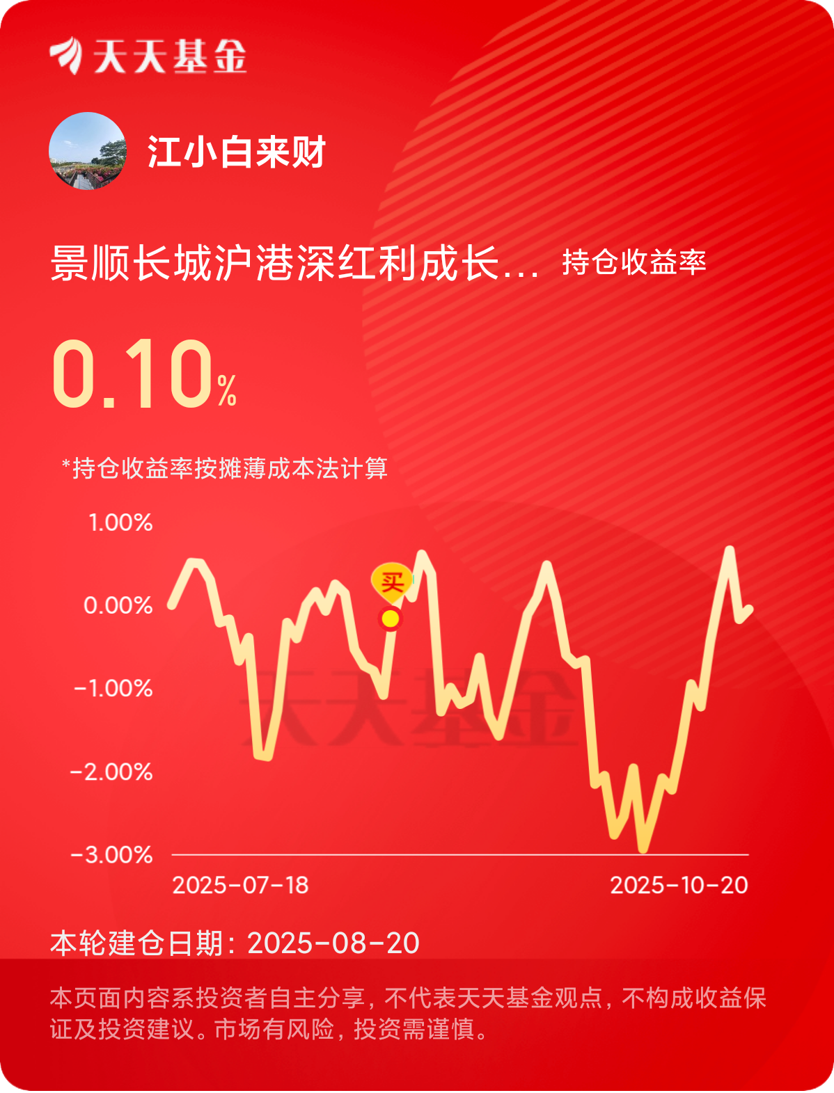 科技波动大,资金开始买红利避险,景顺红利就不错,还有分红,7免指数基不赖$景顺长城沪港深红利成长低波指数E$ #晒收益#