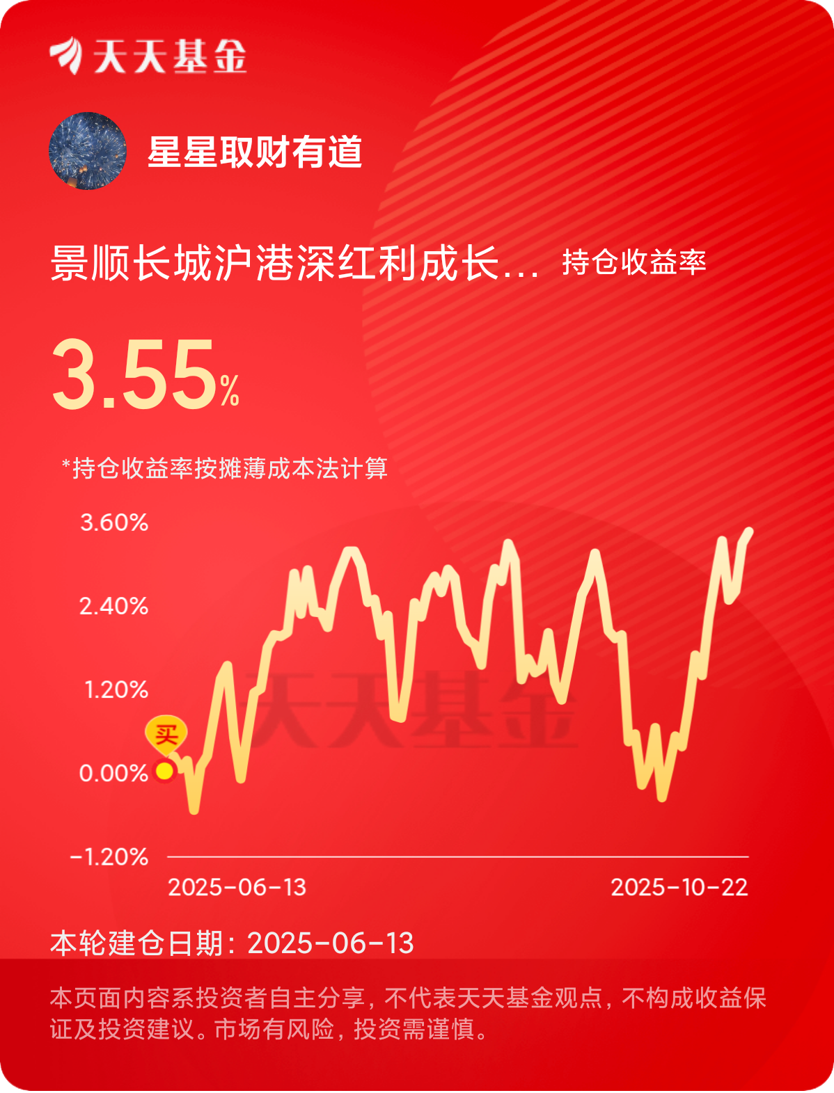 景顺的红利昨天收16个蛋,连涨3天,红利策略还是很有优势的,继续拿住$景顺长城沪
