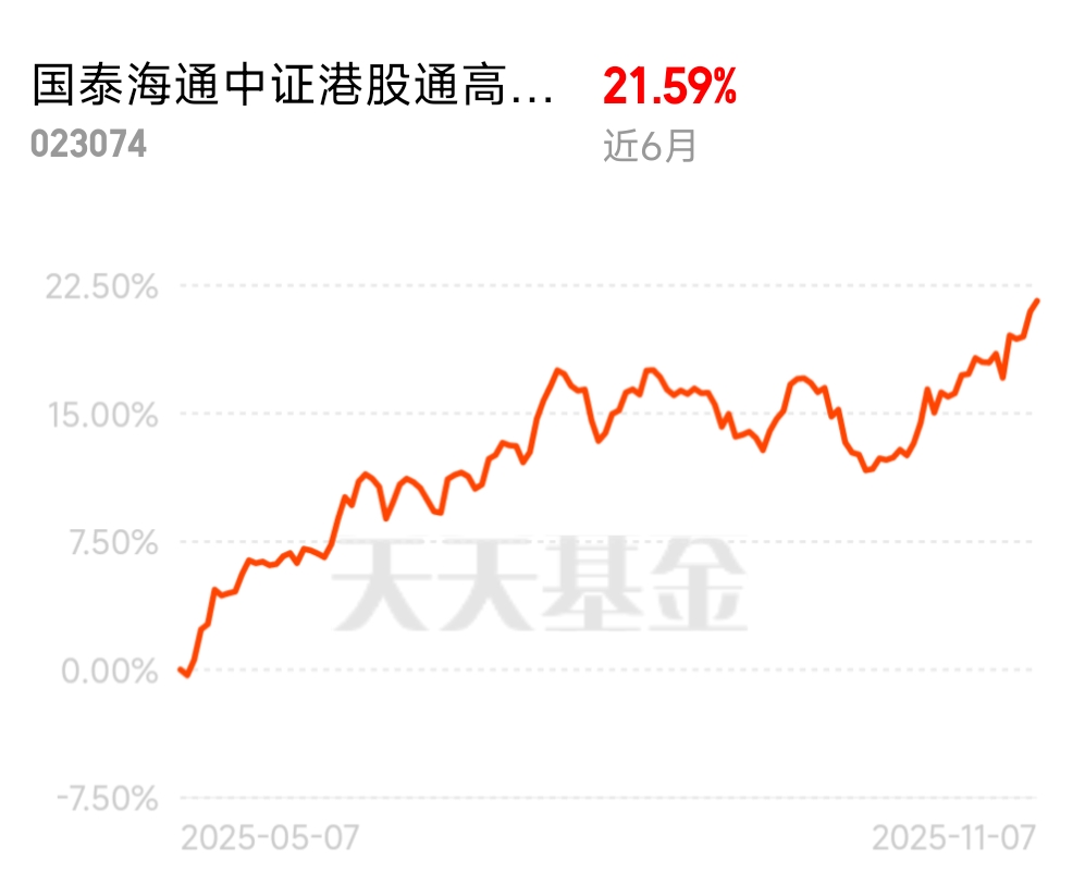 港股高股息策略今年四月初到现在涨势挺强的, $国泰海通中证港股通高股息投资指数发起(QDII)C$ 近半年持续领先优势!今天估值再次大涨!
