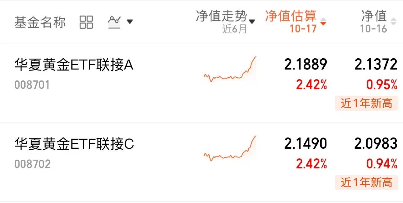 黄金持续新高能力好强,今天估值2%+,还不错,看来新高可期啊