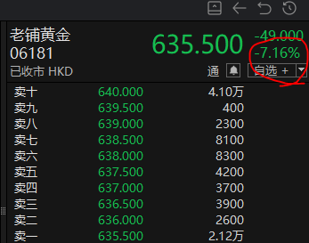 今日港股黄金股重挫!