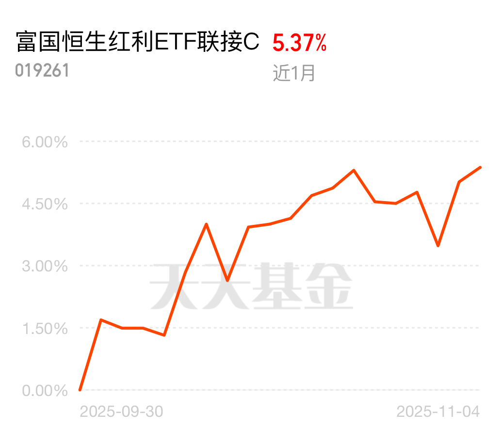 买了华夏黄金ETF联接C的朋友,不妨看看我搭的另一只富国恒生红利ETF联接C,近1个月涨了5%,2年涨了53%,回本最快只要24天,港股高股息+低波动组合,稳中有进。$富国恒生红利ETF联接C$