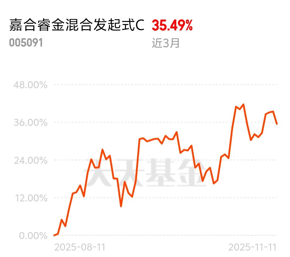 最近基金市场上,科技主题基金迎来小爆发,CPO和存储芯片涨势惊人。嘉合睿金混合C牢牢把握这波行情,近3个月涨了35.49%,收益亮眼,手里没配置的可以考虑这款。