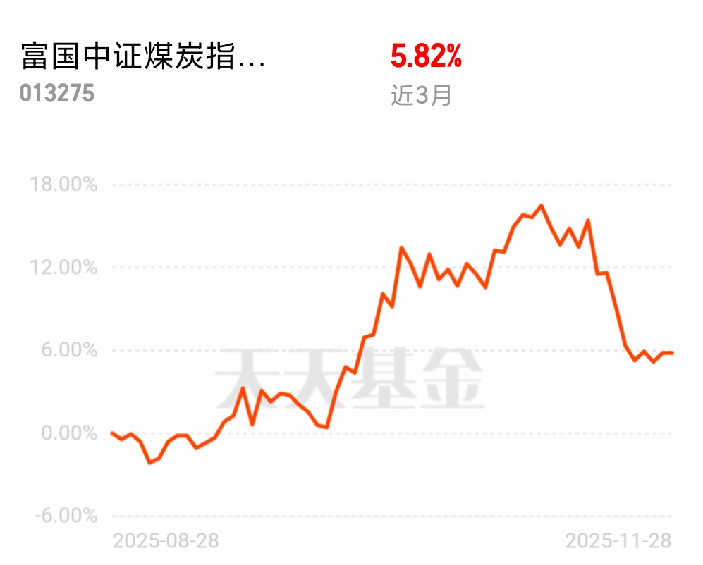 这段时间黄金涨得不错,也顺带看了看富国中证煤炭C,近3个月涨了6%,跑赢多数同类多数同类;持仓里陕煤、神华这些央企煤炭龙头都有,顺周期+中特估属性强,0.44%跟踪误差贴得紧,回本最快134天,拿点底仓心里稳。