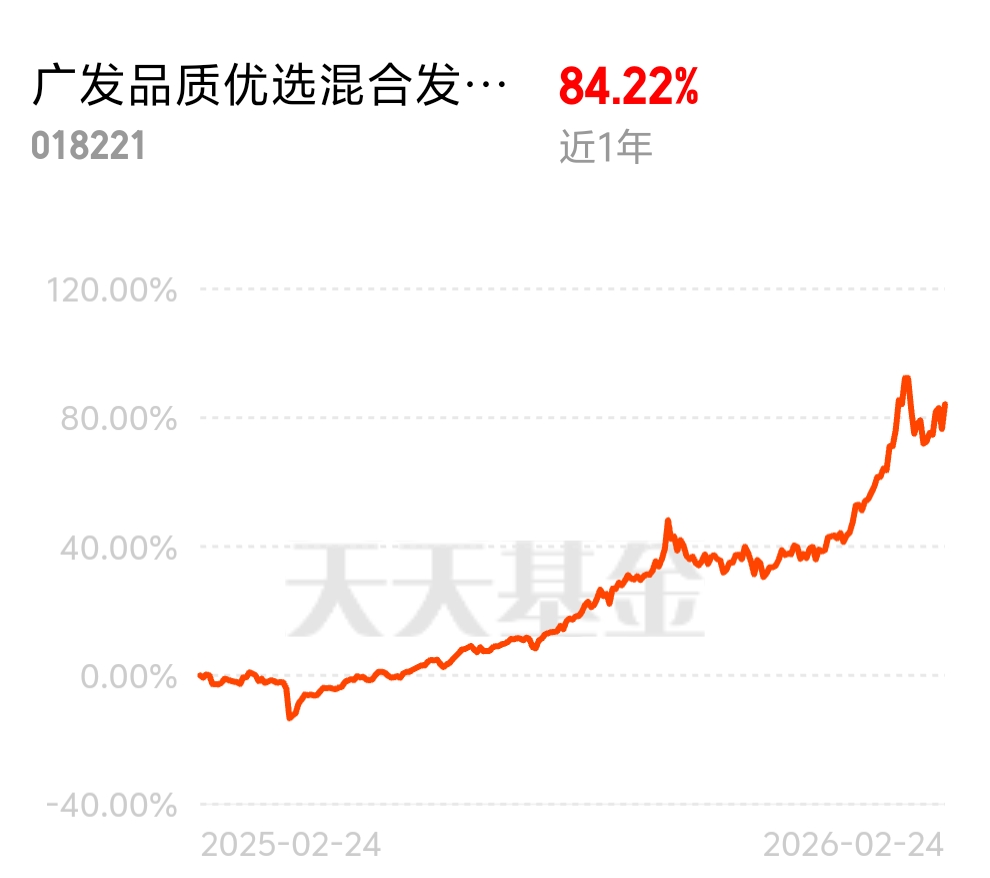 地缘冲突不断,避险资金除了黄金没处去。广发品质优选混合C持仓的黄金股大涨,新年第一天拉升了4.39%,今天还能涨,我的策略是只看不动,考虑到通胀预期抬升,大宗商品还有溢价空间。这只基我准备长线持有,行情还在,在这个时点换赛道反而容易踏空$广发品质优选混合发起式C$
