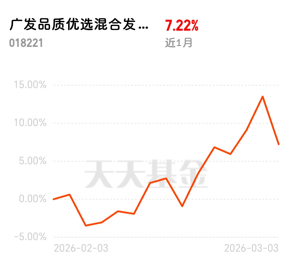看到伊朗那边“不允许一滴石油流出”,原油上涨 。手里广发品质优选混合发起式C拿稳了,这种地缘事件直接把资源品价值推高,手里的黄金、铜都有看头。今天回调,正好符合预期,终于能加点仓了,舒服$广发品质优选混合发起式C$
