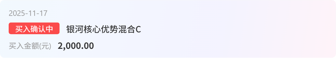 $银河核心优势混合C(OTCFUND|016981)$加仓2000元。