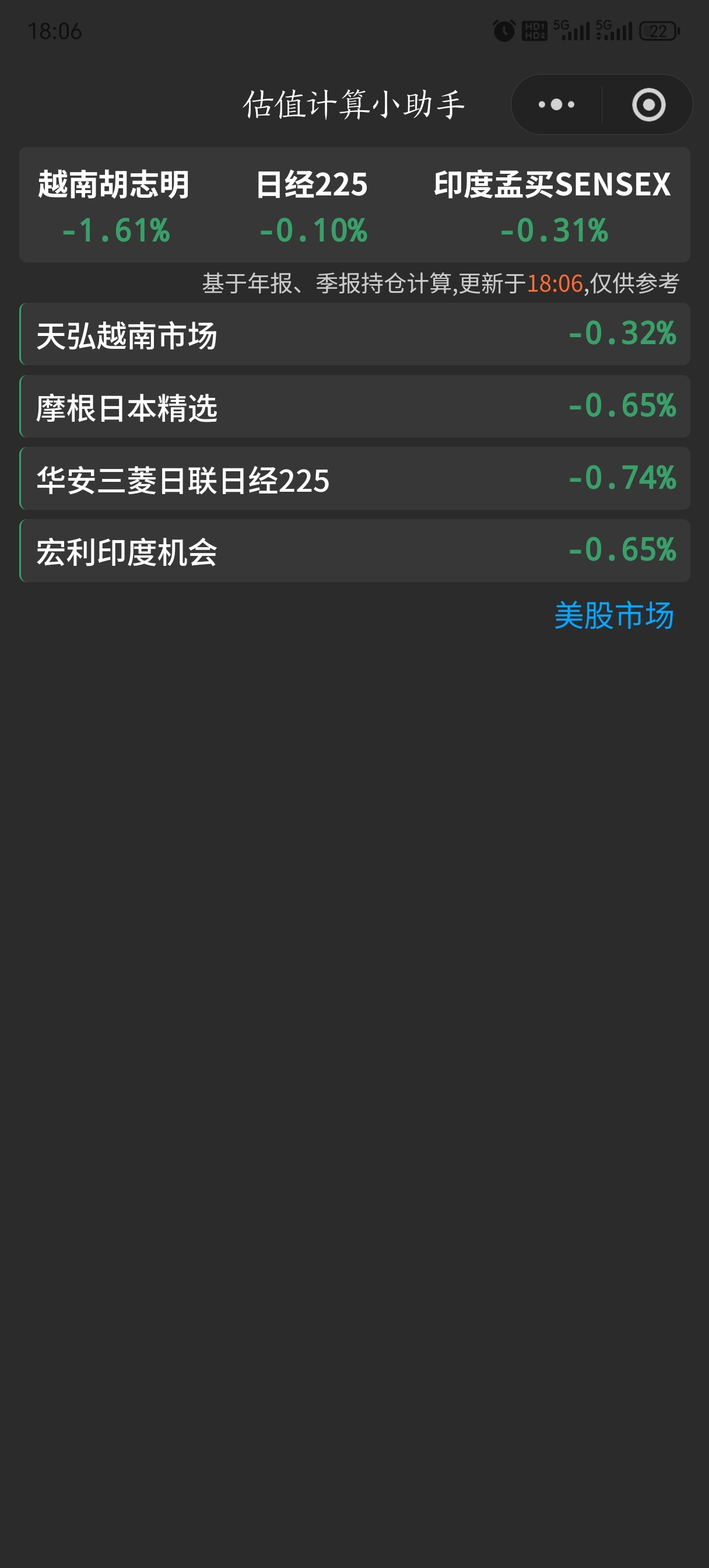 $天弘越南市场股票发起(QDII)C(OTCFUND|008764)$ $越南胡志明(QQZS|VNINDEX)$ $巴西ETF(SZ159100)$ 微信小程序估值计算小助手可以看到亚太市场和美股市场