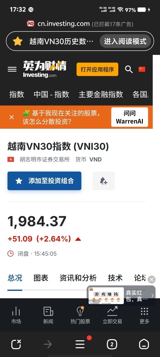 $天弘越南市场股票发起(QDII)C$收盘大涨,今天清仓了