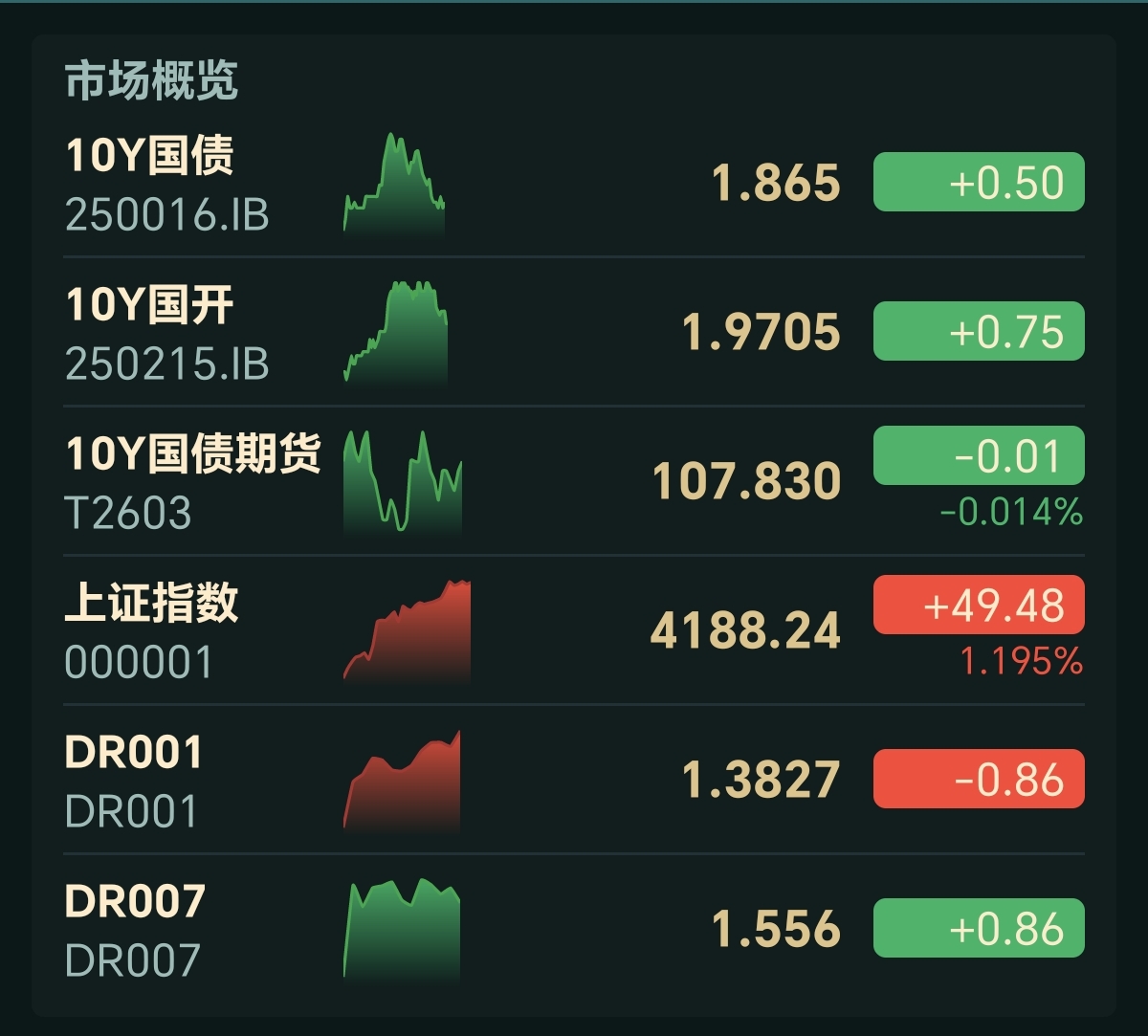股市反弹,债市回落,10年国债活跃券上行0.5BP,收益率1.865%,利率债雨天,短端上行幅度较大,1年国债活跃券上行1.25%,收益率1.25%。30年国债活跃券早盘上行较大,至中午上行0.85BP。