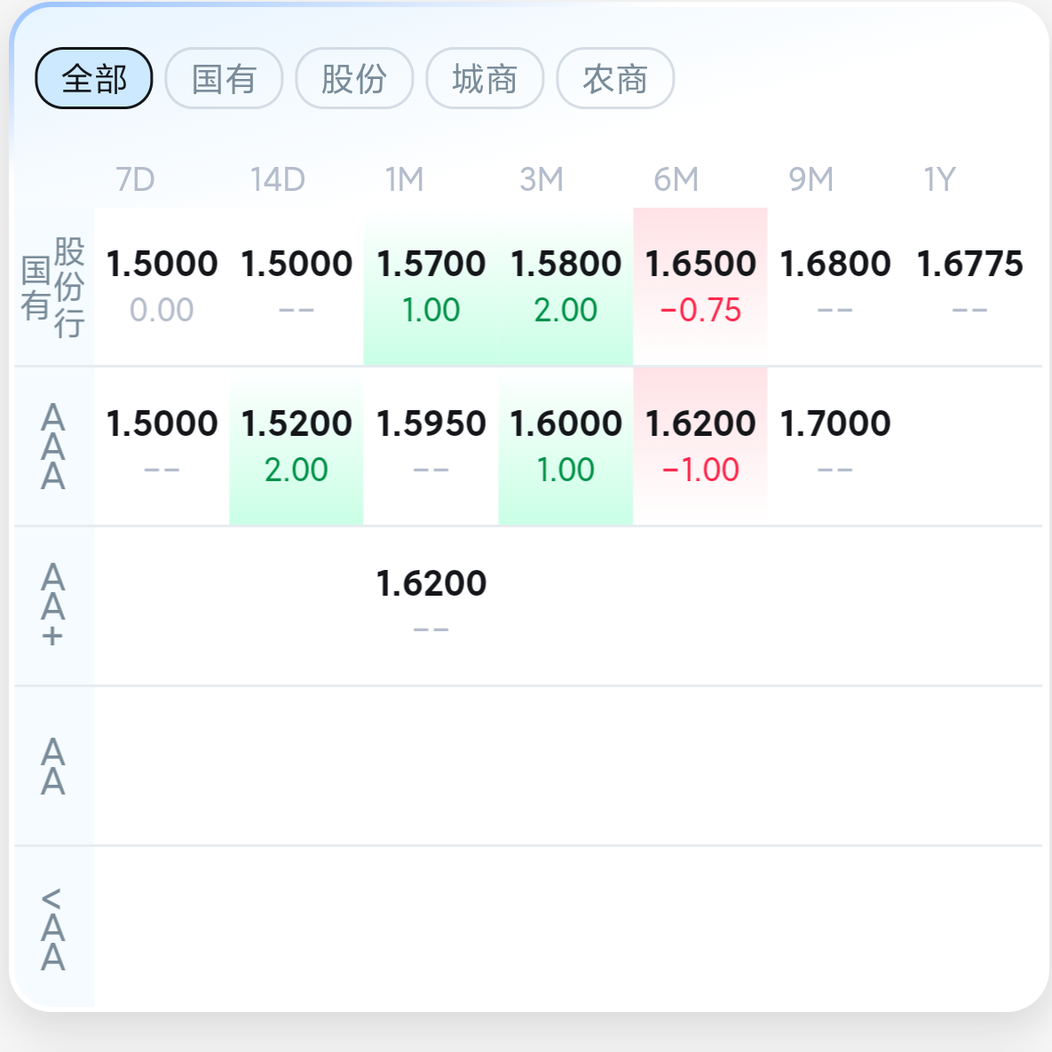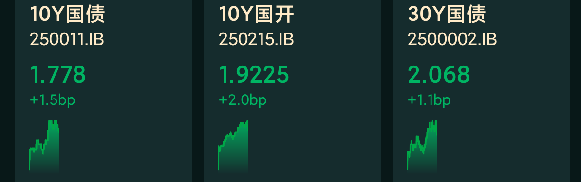 十年期国债收益率:1.778%,+1.5BP(国债收益率越跌,债市越涨)
