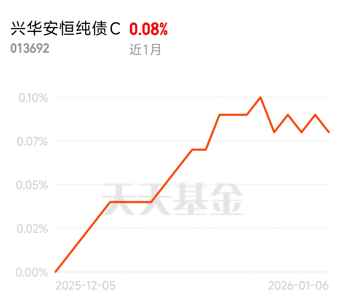 成熟投资者的选择,$兴华安恒纯债C$ 真的稳!3-5 年久期中短债工具属性拉满,近一年涨 2.06%,年年正收益,最大回撤 0.59%。它把稳健、收益、灵活全平衡了,一站式理财体验,理性理财就选它。