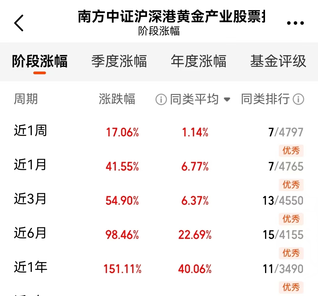 老铁们,黄金这波行情真的猛,我身边好几个朋友都在问怎么上车。说实话,直接买金太贵,金条一克就得好几百,而且变现还麻烦。$南方中证沪深港黄金产业股票指数发起C$(021959)这个基金就简单多了,10块钱就能买,而且投的是黄金产业链,不是直接买金,费用低不少。我去年底买的,到现在涨了快一倍,虽然知道不可能一直这么涨,但至少证明这方向是对的。最近半年同类排名第一,现在摩根都看到5800了,感觉还有空间,反正我准备再补点,错过这波真不知道啥时候还有机会。#黄金逼近5600美元 该如何应对?#
