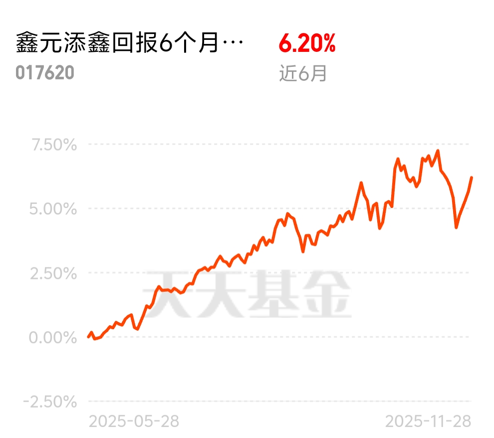 股债市场分化明显,纯债收益平淡、股票波动剧烈,6 个月持有期混合基金刚好平衡。鑫元添鑫回报 6 个月持有期混合 C 近 6 个月收益 6.20%,强制持有锁牢长期收益,不用纠结择时,稳稳跑赢市场。