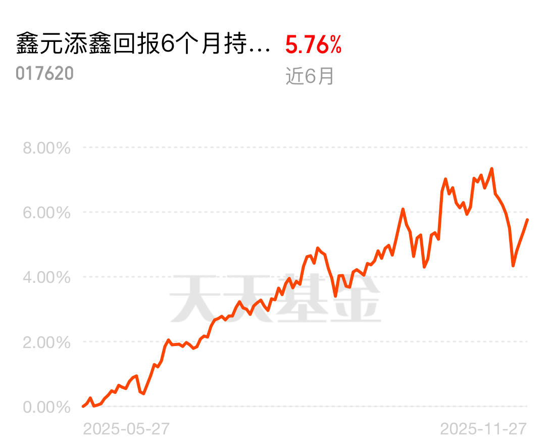 当下市场整体行情平稳,稳健收益型基金的优势越来越明显,吸引不少人选择,鑫元添鑫回报6个月持有期混合C表现不俗,近6个月带来了5.76%的收益,风险可控、收益实在,是很优质的理财选择。