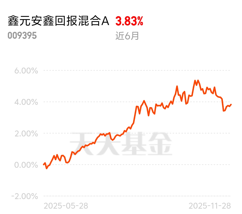 权益市场震荡反复,避险资金往低波动资产跑,混合基金的平衡优势越来越突出。鑫元安鑫回报混合 A 近 6 个月收益 3.83%,先守后攻的策略适配现在行情,既能抗跌又能赚小额增量,拿着放心。$鑫元安鑫回报混合A$
