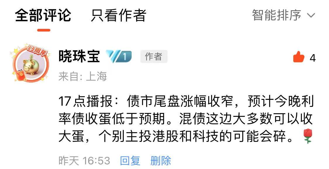 注意,如果播报后,债市尾盘拉升或者跳水,17点左右我会在估值帖子的评论区更新情况。