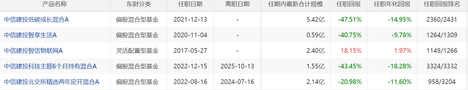 大多数产品的任期回报排名都比较靠后。而刷近三年的业绩排行,倒14之内就包含了他在管的全部产品$中信建投智信物联网C$ $中信建投低碳成长混合C$ 等: