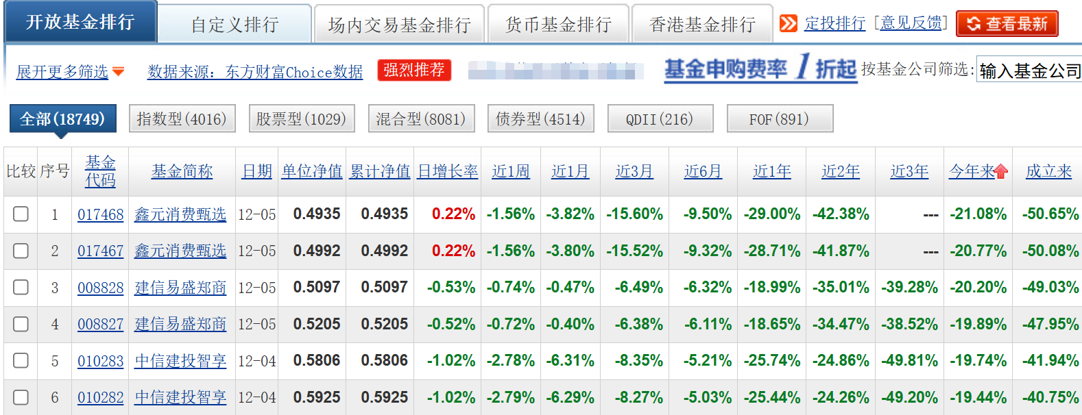 倒1的位置是$鑫元消费甄选混合发起C$ 的。相信不少人盲猜的话,都会猜消费基金业绩垫底,好像这个结果也不令人意外。