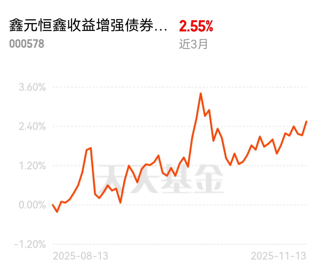 债市近期震荡后逐渐企稳,优质信用债的韧性慢慢显现,正是布局的好时候。鑫元恒鑫收益增强债券A近3个月收益2.55%,稳稳跑赢不少理财。手里有闲钱的别闲着,逢低买入锁仓,让资金持续生息不闲置。