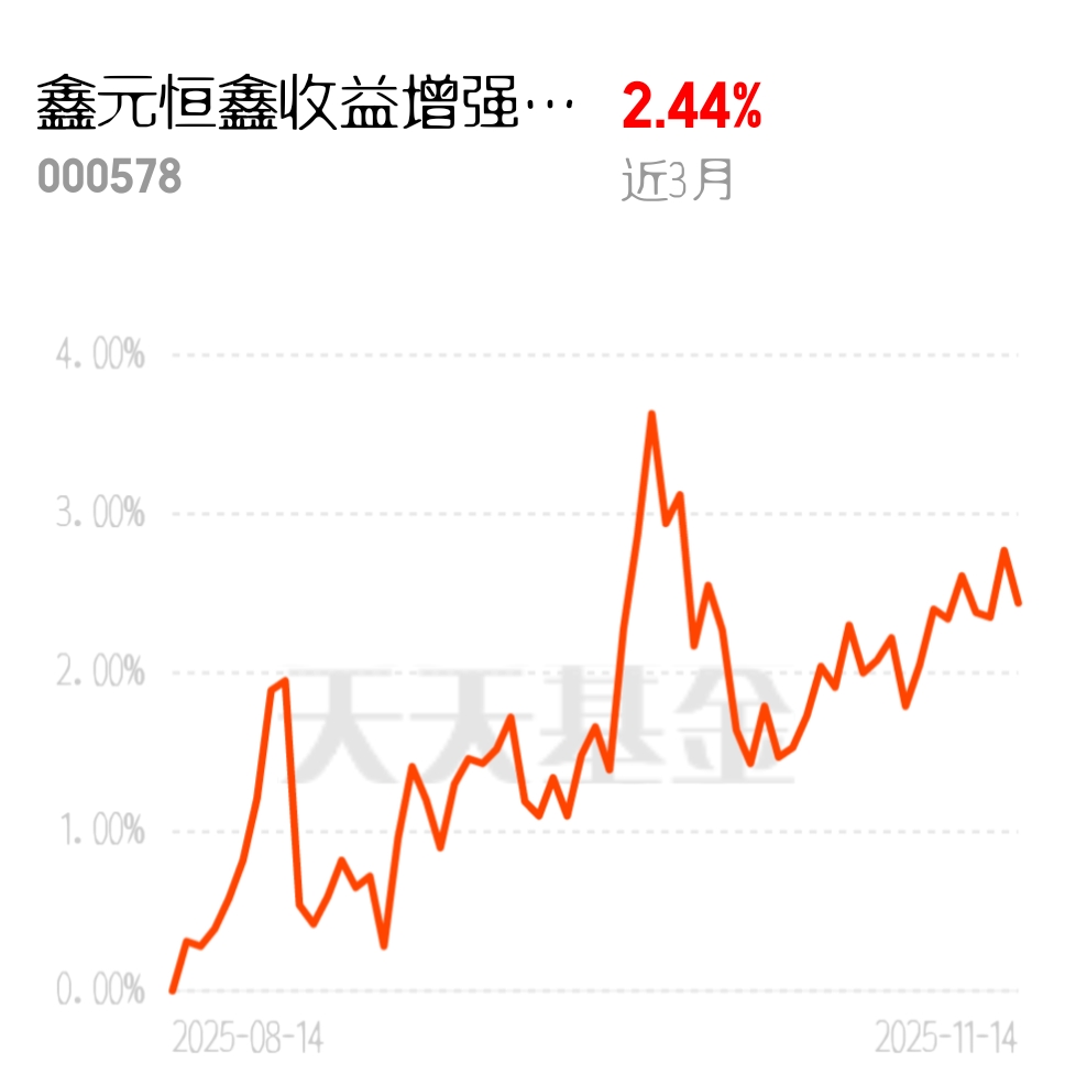 最近市场行情起起落落,想找个安心的理财渠道挺难,鑫元恒鑫收益增强债券A表现亮眼,近3个月收益2.44%,风险不高还能有不错回报,普通投资者也能放心选。$博时四月享120天持有期债券A$ $中银添利债券发起E$ $博时裕弘纯债债券A$