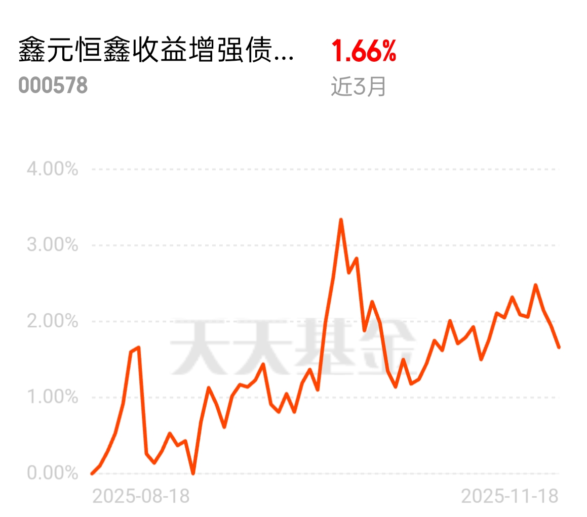 现在理财市场里,波动小、收益稳的产品越来越抢手。鑫元恒鑫收益增强债券A就很合心意,近3个月收益1.66%,不用冒险就能拿到实在回报,日常攒钱、打理闲钱都特别合适。$鑫元恒鑫收益增强债券型发起式A$