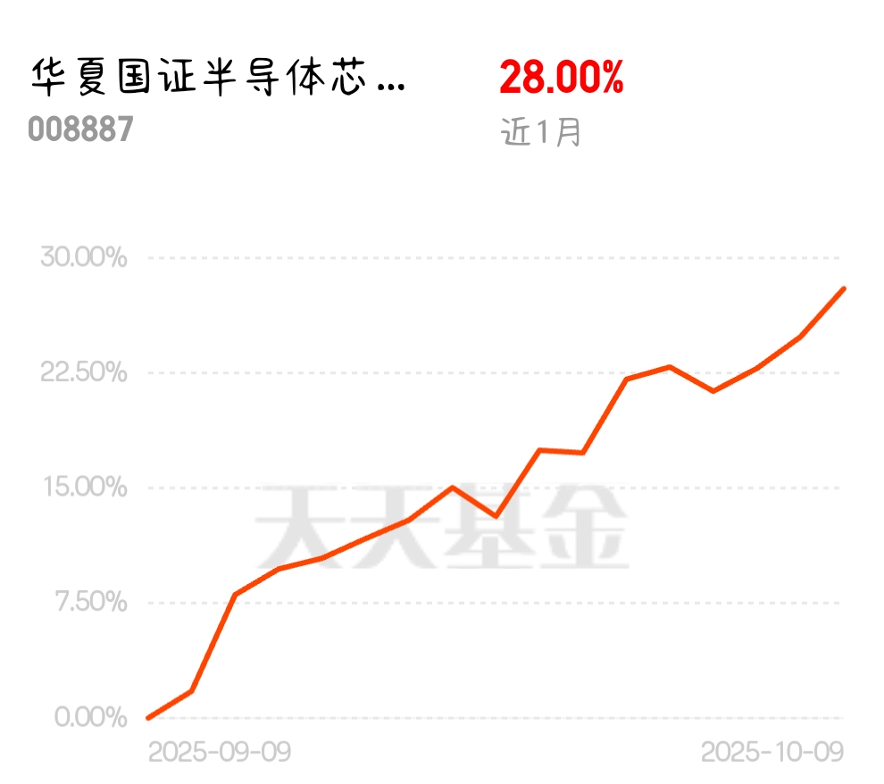 一个月28%的收益,弹性不错,逢低继续布局$华夏国证半导体芯片ETF联接A$