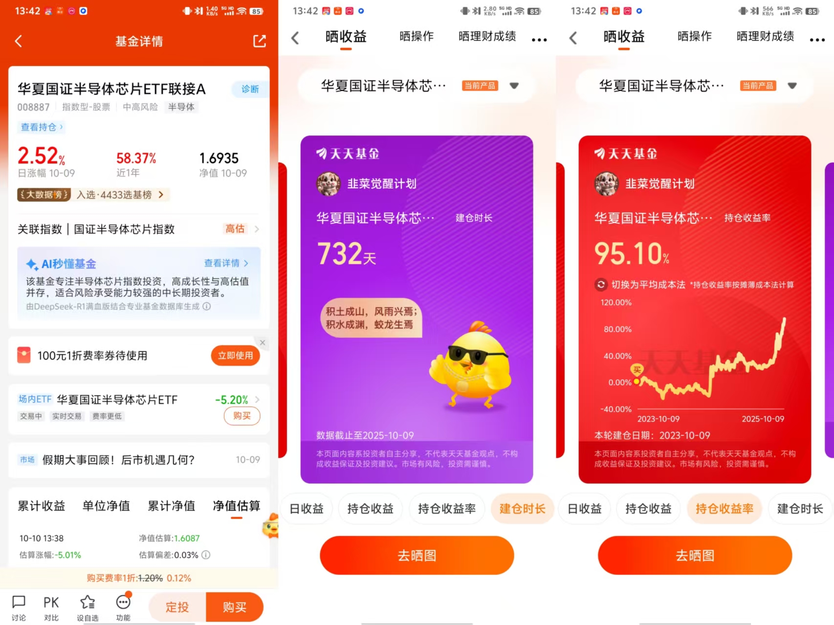 华夏国证半导体芯片ETF联接A的历史业绩表现堪称亮眼。截至2025年9月30日,基金今年以来收益率高达50.82%,成立以来收益率为65.18%。更令人瞩目的是,截至9月23日的数据显示,基金近一年收益率达到125.08%,过去三年收益率66.21%,过去五年收益率46.35%。