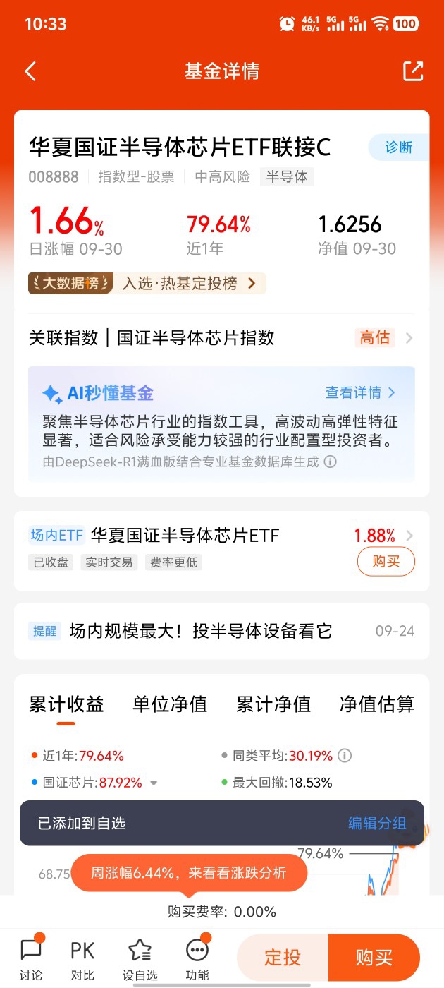 #分享国庆见闻,晒收益,瓜分好礼!# $华夏国证半导体芯片ETF联接C$