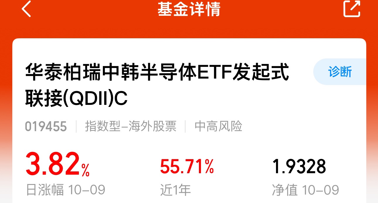 $华泰柏瑞中韩半导体ETF发起式联接(QDII)C$ 今日净值增长3.82%,近一月累计24.20%,三月达43.38%。在国产替代与AI应用加速落地的背景下,半导体板块中长期成长逻辑持续强化。