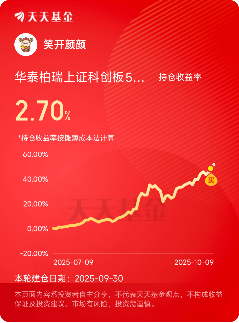 看了一下,$华泰柏瑞上证科创板50成份ETF联接C$ 近一个月收益快22%了,更惊喜的是三个月居然有51%!这趋势拿稳了。#晒收益#
