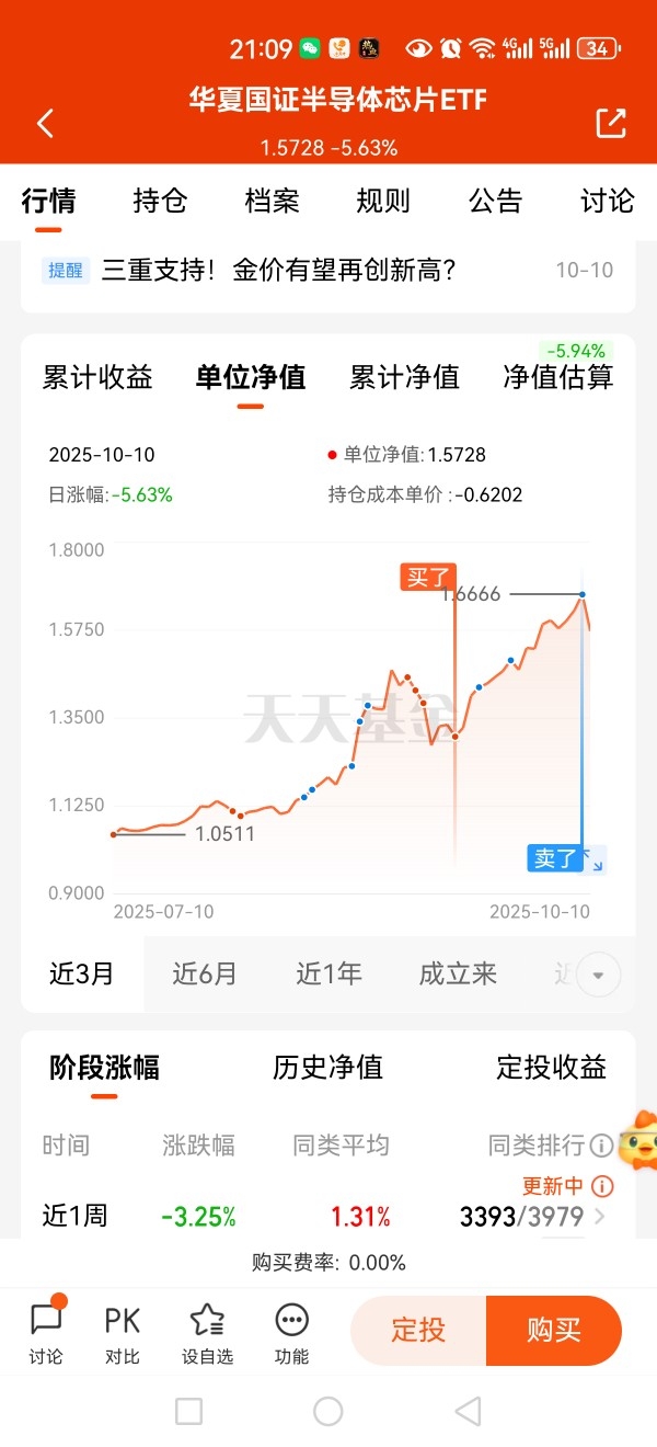 $华夏国证半导体芯片ETF联接C[008888]$ 成本已经为负数,余下的几个W底仓留做纪念吧。
