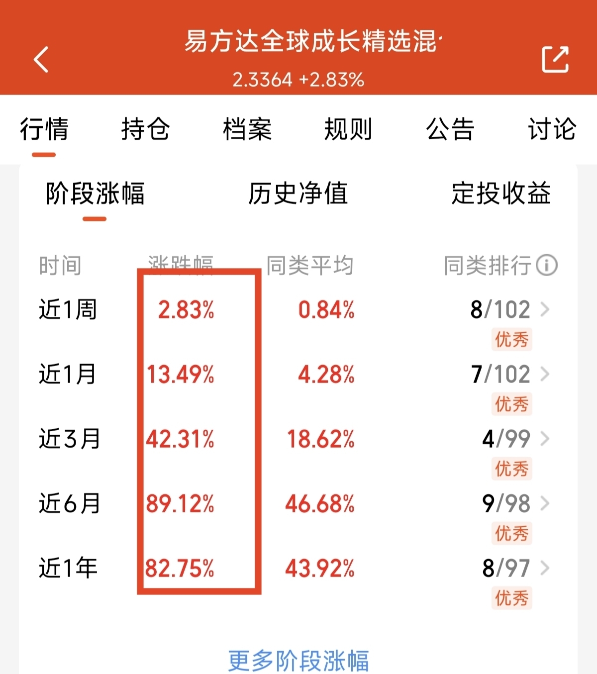 今天的科技表现还是不错。在美联储降息已经打开的预期节奏下,全面利好全球科技。美股科技已经迎来突破。A股的算力也是紧随其后。港股的互联网科技表现也是越发强烈。$易方达全球成长精选混合(QDII)人民币C$ 这只聚焦全球科技的主动混合基金。基金经理通过投资a股,港股,美股多地来把握。全球科技的不同市场的机会。持仓整体更均衡。还可以规避单一市场波动风险。国庆假日期间涨幅大幅跑赢了美股科技。近半年涨幅89.12%。长期超额收益能力强。而且遇到波动回撤小,坚定看好未来的突破表现。