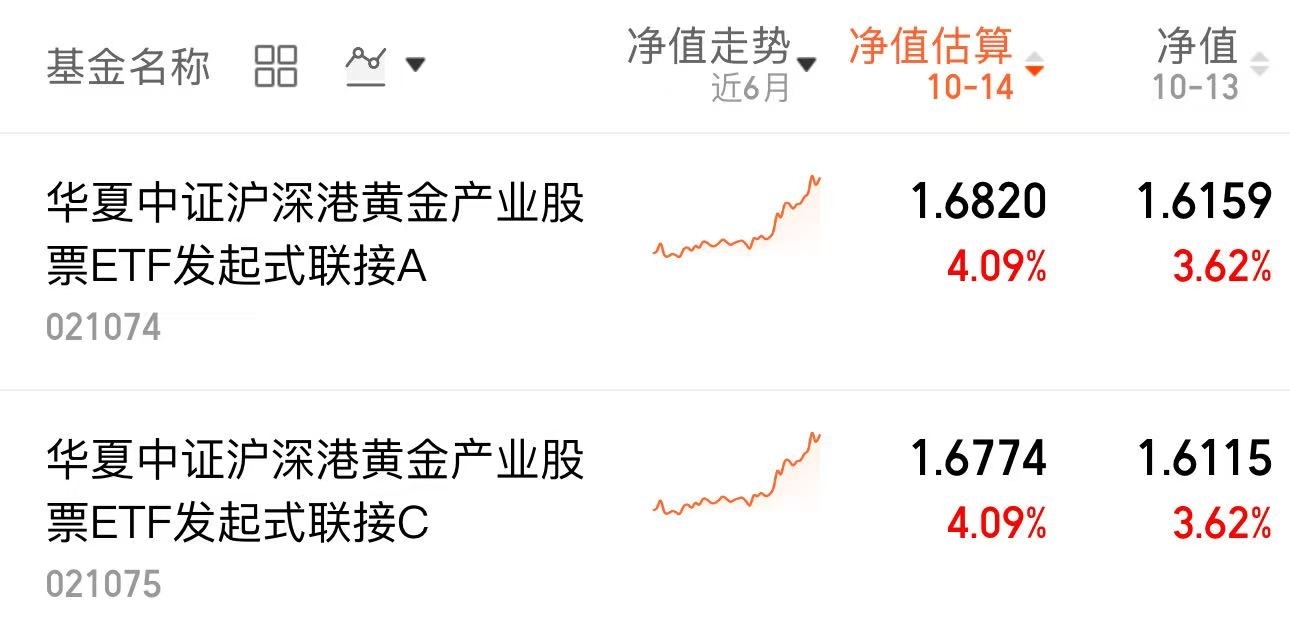 市场聚焦黄金,这基当前上涨超4%,老美加关税叠加避险清晰上升,$华夏中证沪深港黄金产业股票ETF发起式联接C$上车即赚,布局了