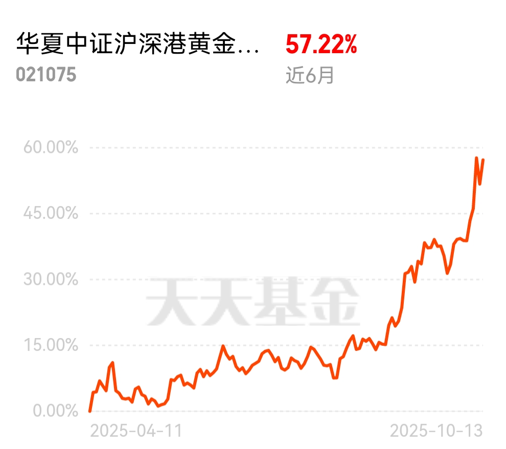 昨天逆势上涨收益3.62%,6个月也有57.22%的收益了,在美元走弱大趋势、美联储降息预期、地缘局势不确定性、避险需求和各国央行持续购金等逻辑驱动下,走强逻辑有望持续演绎$华夏中证沪深港黄金产业股票ETF发起式联接C$