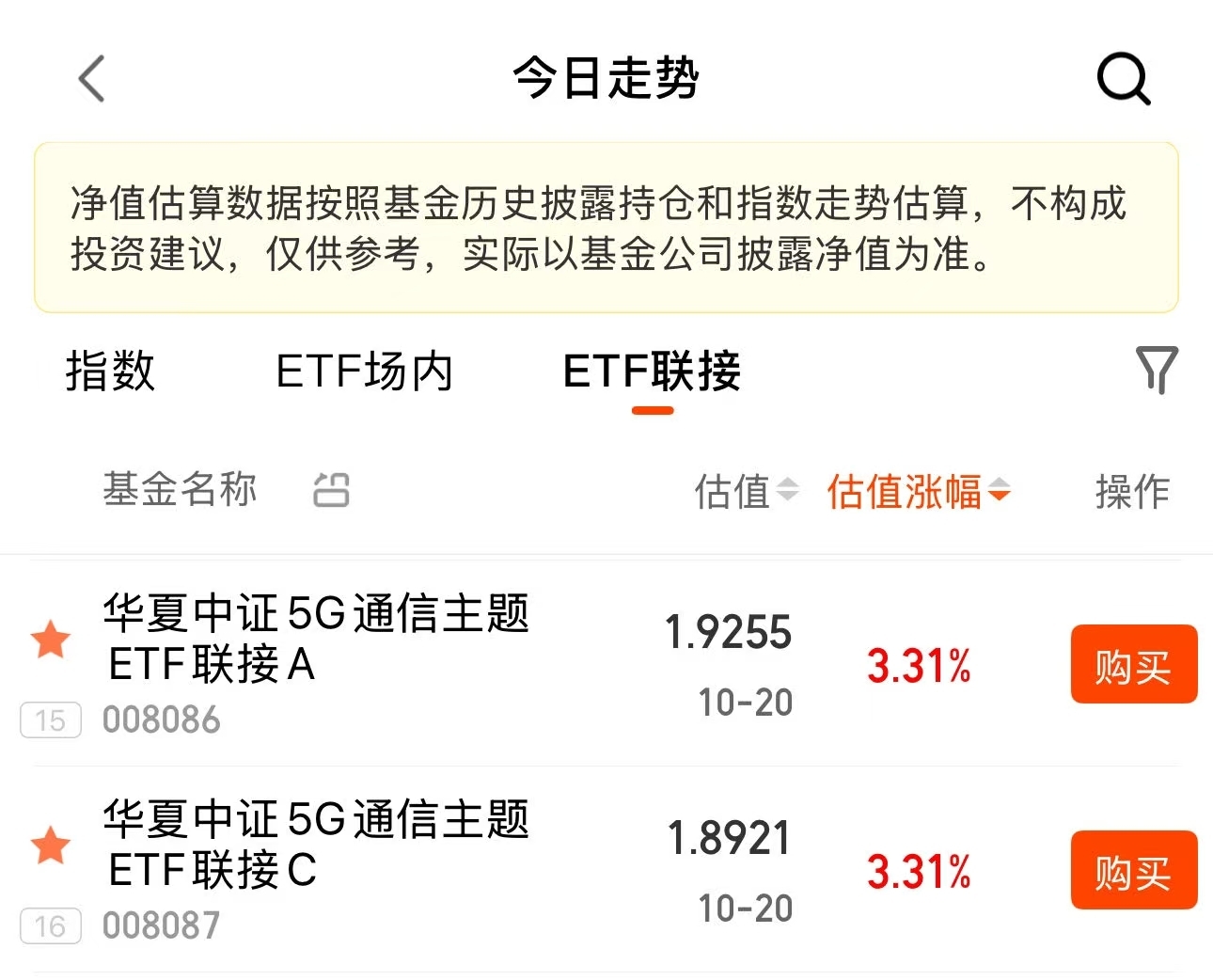 经过上周五的调整,今天开盘超涨3%,伙伴们$华夏中证5G通信主题ETF联接C$持