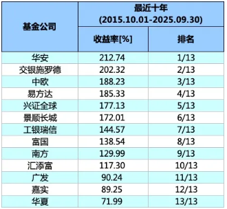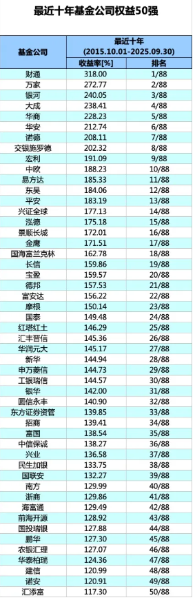 过去10年主动投资前50基金公司榜单出炉,华夏基金未上榜!