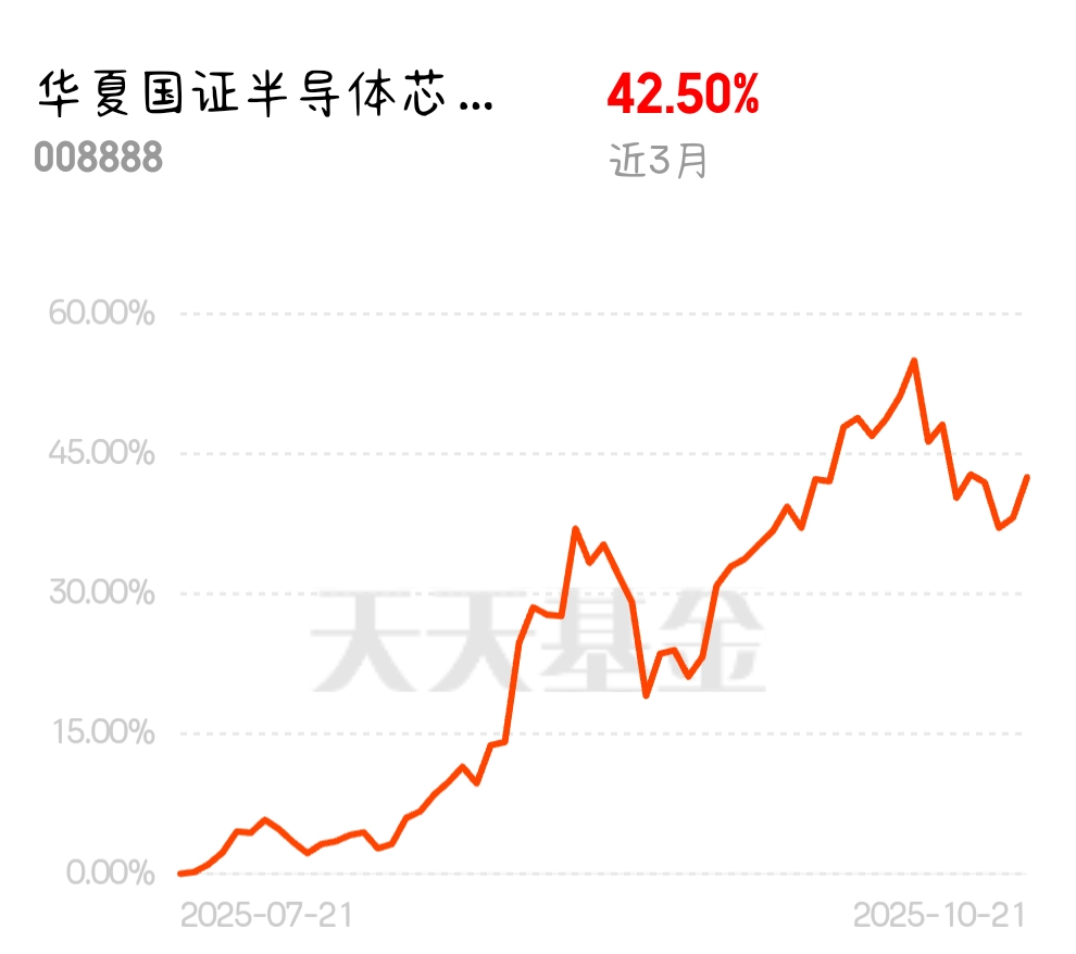 近3个月收益42.50%,收益还是很可观的,伙伴们你们今天回调的时候都入了么?$华夏国证半导体芯片ETF联接C$