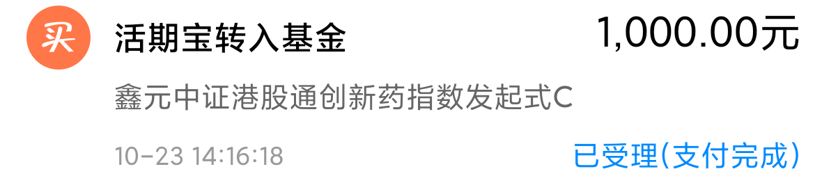 买进1000的 $鑫元中证港股通创新药指数发起式C(OTCFUND|024408)$