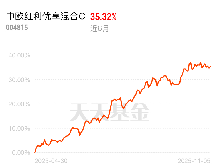 身边不少人总想着抄底赚快钱,可市场底部哪那么好猜,抄来抄去反而越套越深。我还是老老实实定投中欧红利优享灵活配置混合C,近6个月收益很亮眼,蓝小康这位基金经理专注价值投资,持仓兼顾稳健和成长,震荡市也能稳稳盈利。$中欧红利优享混合C$