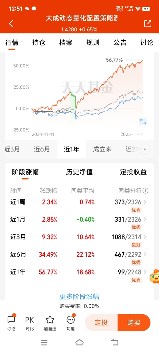科技芯片应该也快走到底了,我更加看好小微盘主题的基金,特别是$大成动态量化配置策